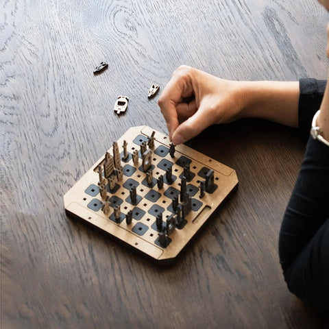 The Den Haag City Chess Set features pieces inspired by iconic landmarks like the Binnenhof and the Peace Palace, celebrating the city's prestigious heritage. Its compact board includes built-in storage, making it ideal for travel or display. Crafted from premium materials, it’s a unique keepsake for chess and Den Haag enthusiasts alike.